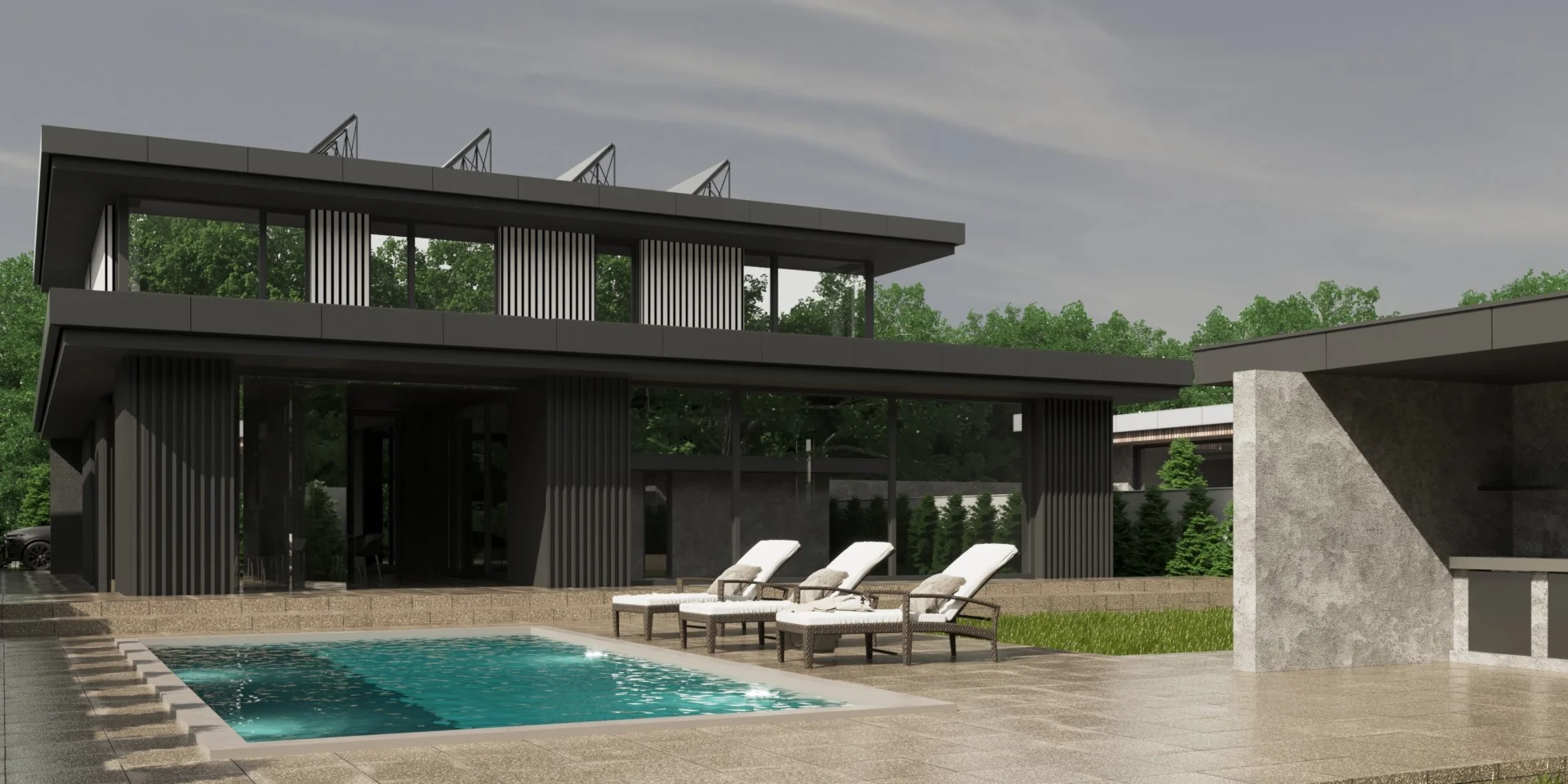 Ескізна частина — це концепція будинку, яка містить інформацію про габарити, планувальні рішення, розміщення на ділянці та зовнішній вигляд. Вона дозволяє остаточно узгодити всі ключові рішення для подальшої розробки проєкту та є підставою для отримання будівельного паспорта в місцевій адміністрації.